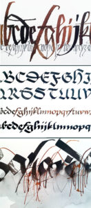 Im ersten Block widmen wir uns der spätmittelalterlichen gebrochenen Schrift „Bastarda“. Zunächst schreiben wir die Bastarda in einer reduzierten Form, die uns als Basis für spätere freiere Varianten dient. Nach und nach werden wir freier und experimentieren mit verschiedenen Proportionen. Unterschiedliche Werkzeuge kommen zum Einsatz, so dass diese historische Schrift einen ganz eigenen und modernen Charakter erhält. Ziel des Kurses ist eine fertige Arbeit. Unsere Übungen halten wir in einem Leporello fest.